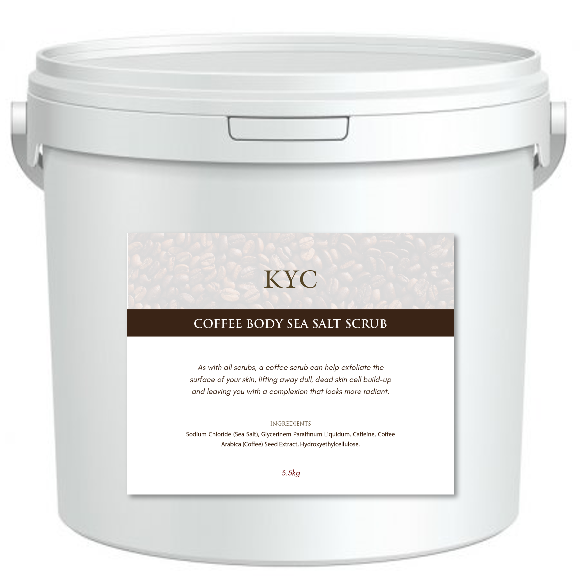 Ingredients: Sodium Chloride (Sea Salt), Glycerine Paraffinum Liquidum, Caffeine, Coffee Arabica (Coffee) Seed Extract, Hydroxyethylcellulose.